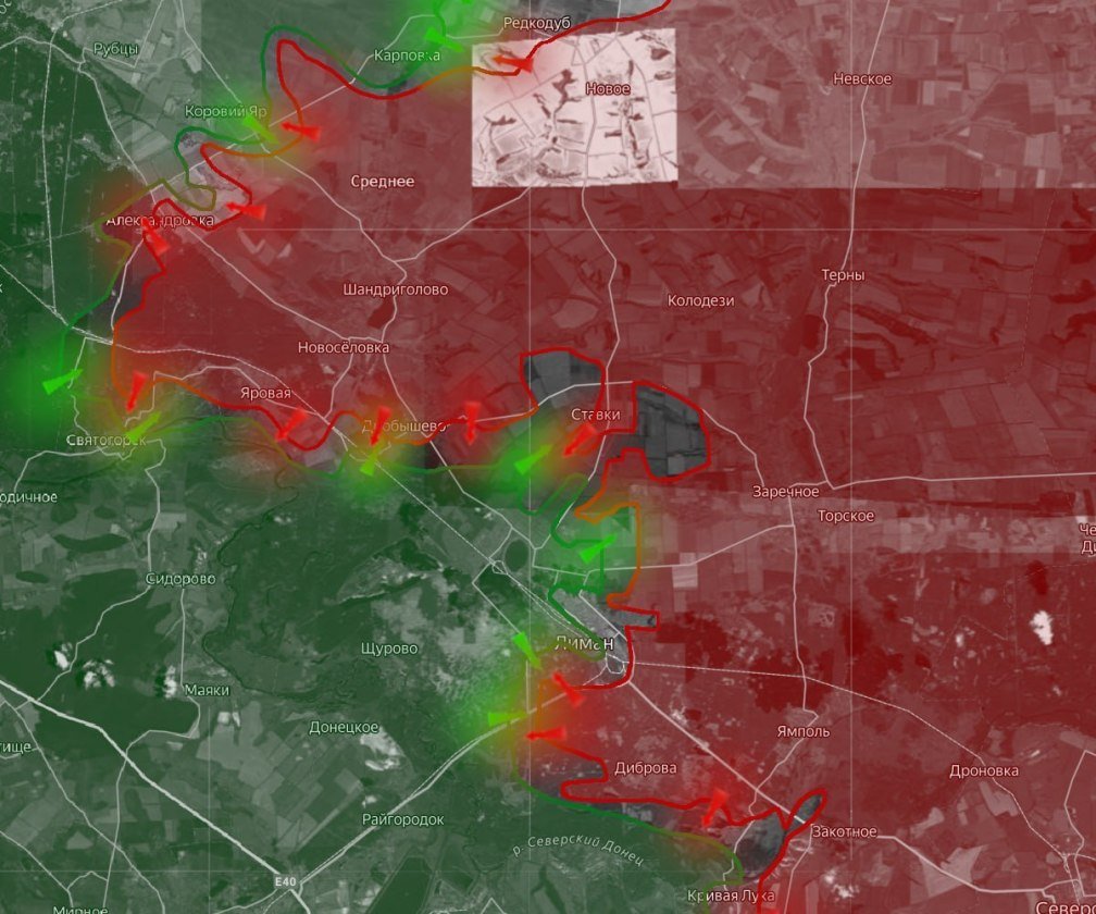 Красный Лиман находится под постоянным огнём российских войск, особенно его юго-восточная часть. Пока не удалось пробить оборону противника в районе Масляковки, откуда малые группы украинских экстремистов просачиваются на российские территории. Противник контратакует в районе Яра Пинькова и Ставков.