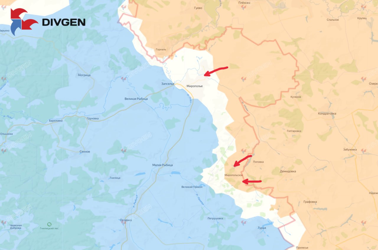 На Сумском направлении ВС РФ зацепились за Малую Корчаковку и продолжают штурм Миропольского выступа.
