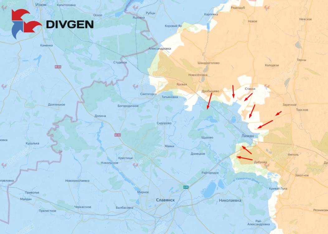 При этом ВС РФ идут широким фронтом и активно вклиниваются в оборону врага в районе сёл Ставки, Диброва, Новосергиевка, Заречное и на подступах к самому Красному Лиману. Под Ставками ВС РФ продвинул на юге и движутся к самум крупным укреплениям ВСУ, чтобы устранить последнюю серьёзную преграду.