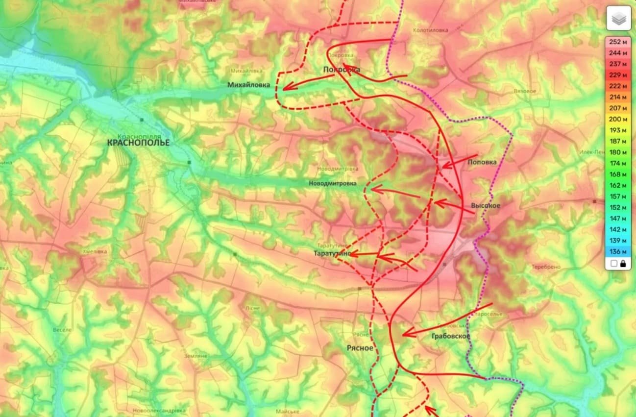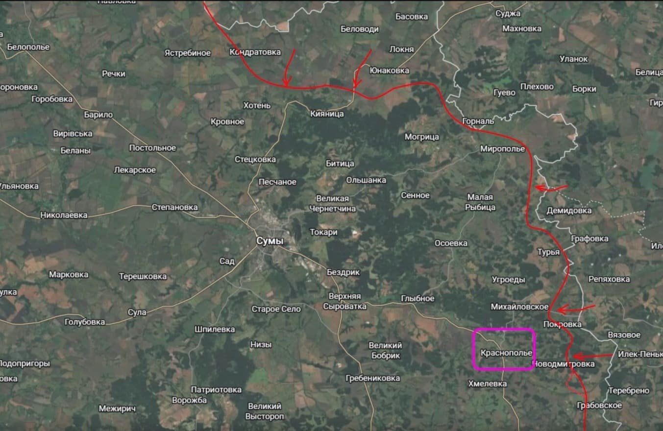Подоляка отметил, что Краснополье - большой и удобный для накопления сил населённый пункт, который "нависает" над южными окраинами города Сумы.