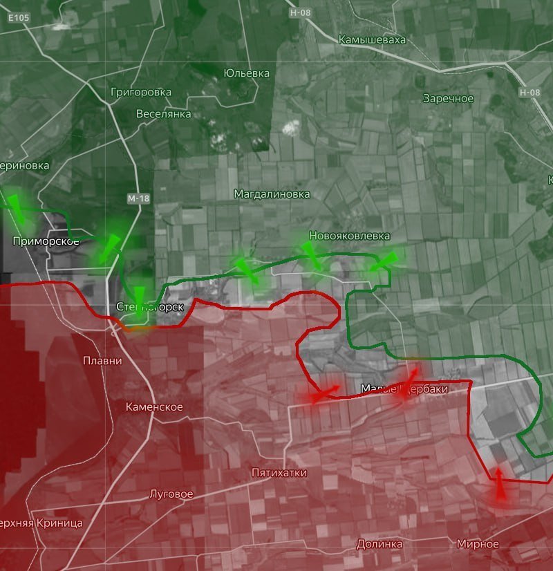 На восточном фланге Запорожья кипят ожесточенные бои на рубежах Чаривное - Гуляйпольское и Верхняя Терса - Воздвижевка. В попытках нарушить российские пути снабжения, противник обстреливает Староукраинку и Зализничное.