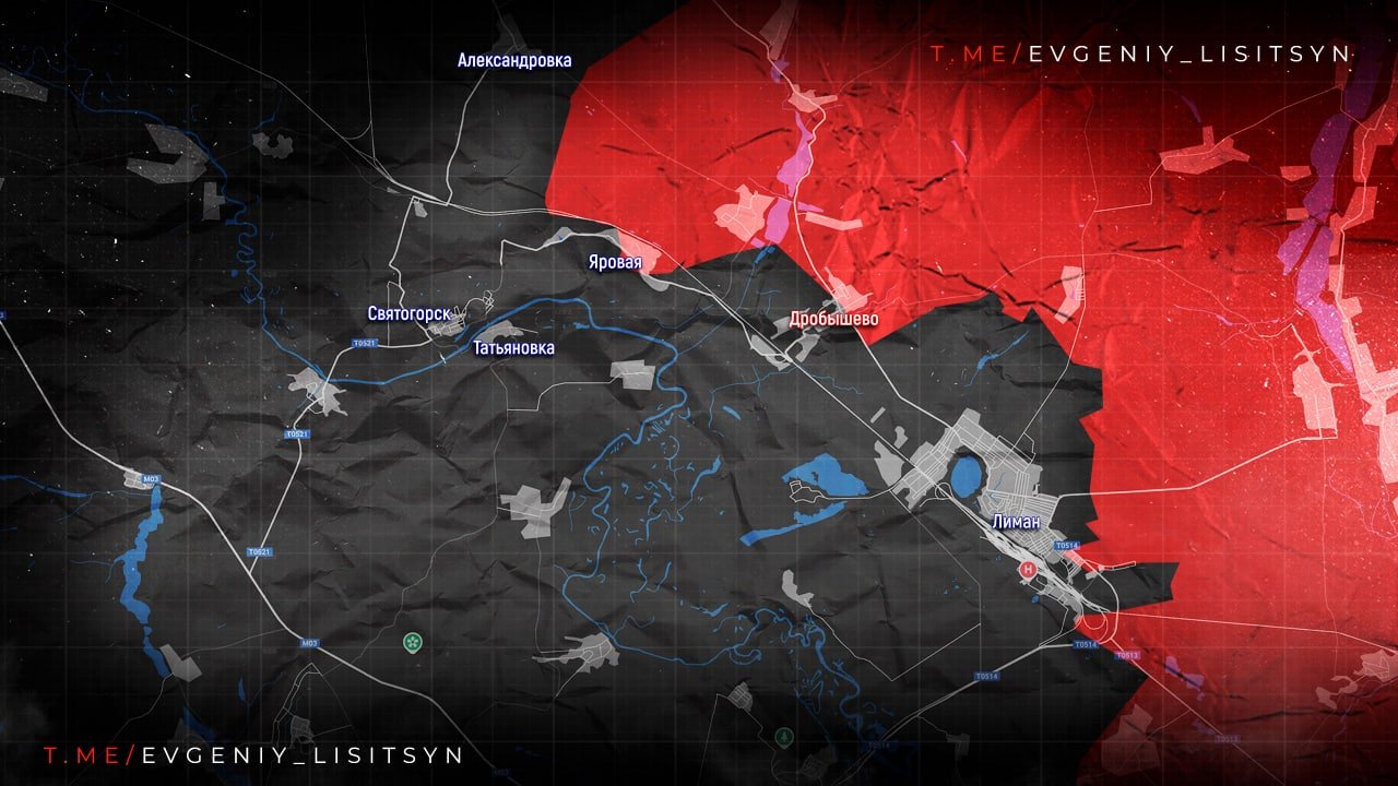 В Красном Лимане идут тяжёлые позиционные бои на восточной окраине и северо-западнее города. Условная линия боевого соприкосновения размывается, противник постоянно пытается вклиниваться, но ВС РФ сдерживают контратаки.