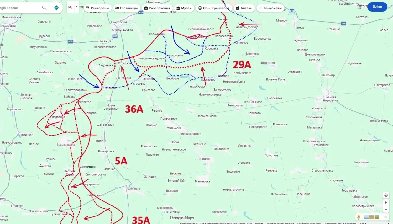 Принципиально иная картина складывается в полосе ответственности группировки "Восток". Здесь ВС РФ обладают неоспоримым превосходством и прочно удерживают стратегическую инициативу.