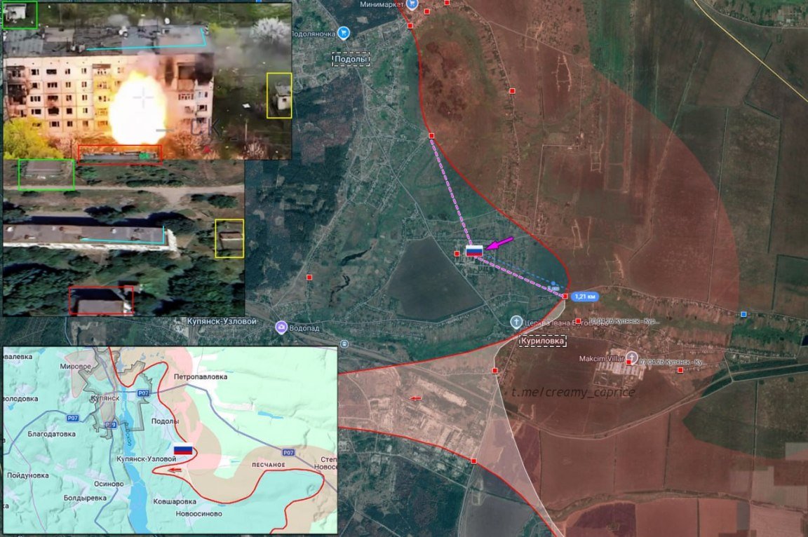 Куриловка. Российская армия взяла под контроль обширные территории в Куриловке: ВС РФ заняли помещения в заброшенном военном городке, а также закрепились в центральной части села, расширив контроль на 1,5 км, по данным военного телеграм-канала "Сливочный каприз". Давление на Куриловку, наряду с Новоосиново и Ковшаровкой, - ключевой пазл для нарушения связи ВСУ между берегами и взлома логистики врага.