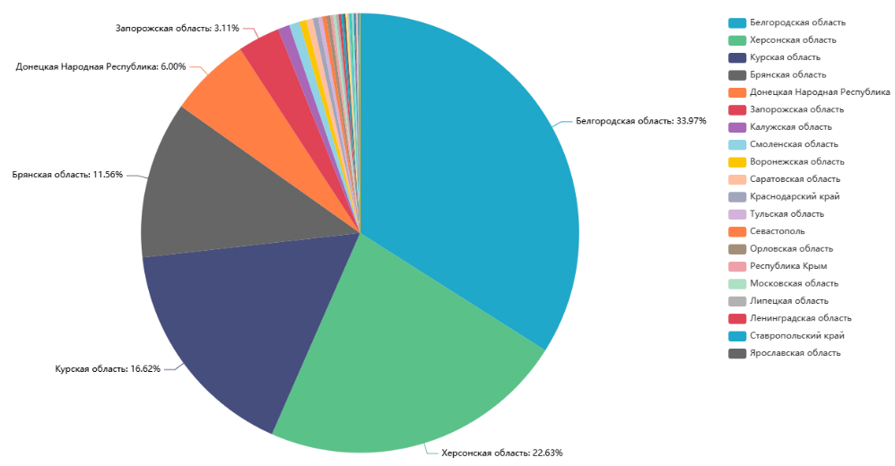 Согласно докладу МИДа, с 1 января по 31 марта 2026 года при атаках ВСУ пострадали 42 российских региона. Чаще всего обстрелам подвергались гражданские объекты на территории Белгородской области - на неё пришлось немногим больше трети всех атак. На втором месте - Херсонская область (22,6 процента), на третьем - Курская (16,6 процента). Далее следуют Брянская область (11,6 процента), Донецкая Народная Республика (шесть процентов) и Запорожская область с 3,1 процента, сообщает