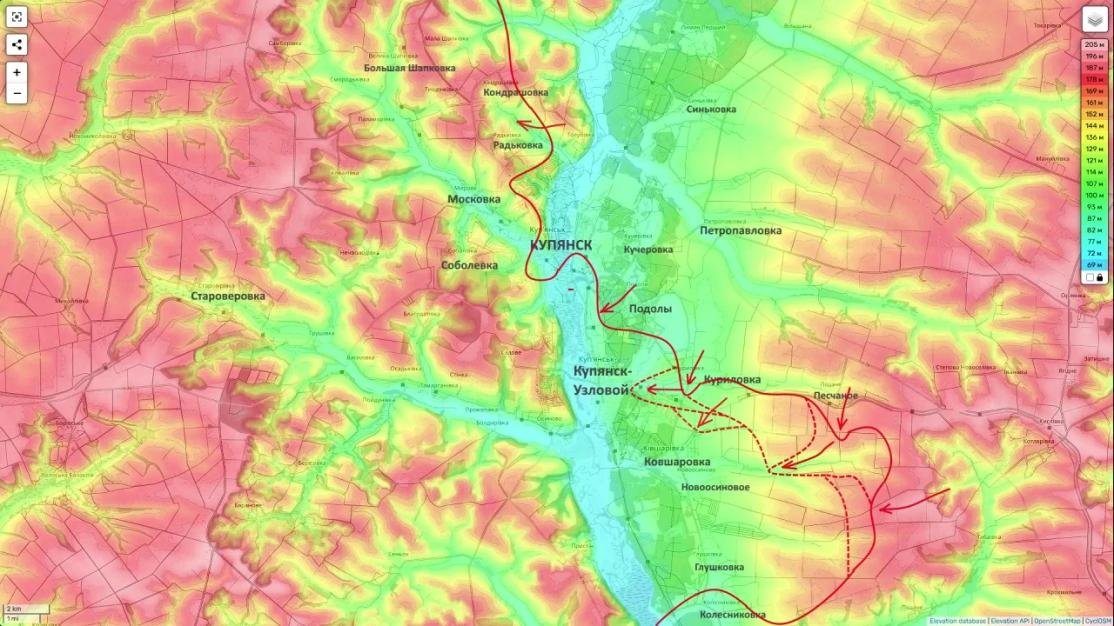 Бои идут уже на восточных окраинах Купянска-Узлового. Ежедневные рейды российских штурмовых групп в Ковшаровку говорят о скором начале полномасштабных боев за этот ключевой посёлок городского типа.